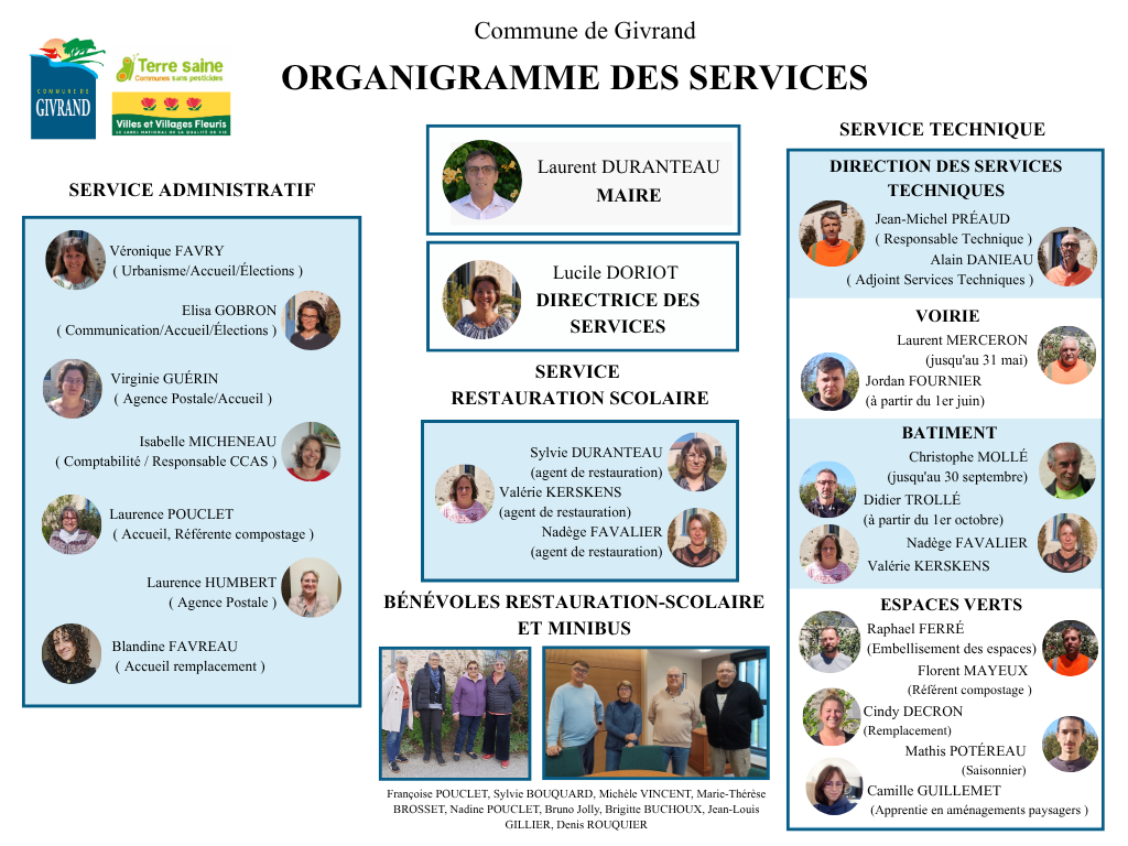 Notre commune compte une vingtaine d'agents, répartis entre service administratif, service technique et restaurant scolaire.