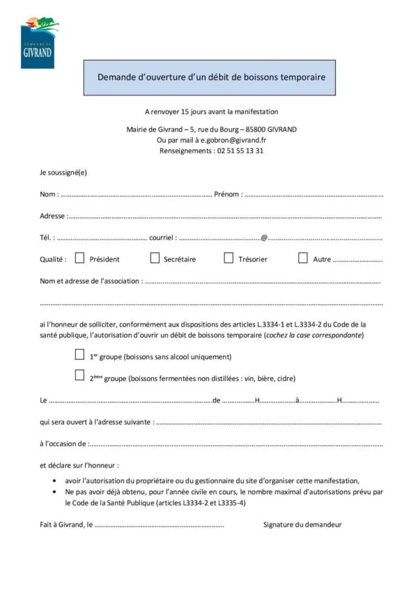 Demande de débit de boissons temporaire