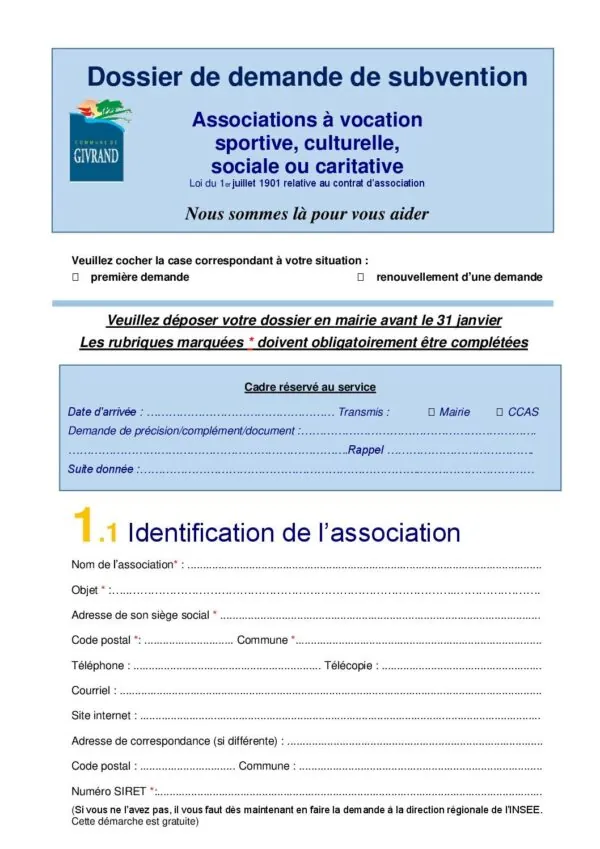 Dossier à compléter et à déposer en mairie avant le 31 janvier